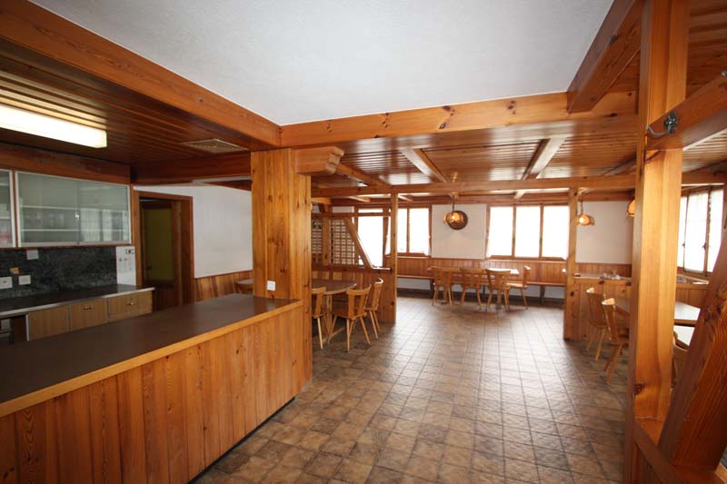 * 2Raumangebot: Bergrestaurant im EG (evtl. umbaubar in 2.5-Zi.-Wohnung) mit 140 m2 Nutzfläche: Eingangsbereich mit WC-Anlagen, Putzkammer, Wäscherei, Abstellkeller, Vorratskeller. Zweiseitiger Buffet-Bereich, Grosser Bewirtungsraum mit Ausgang auf den Garten-Sitzplatz. Aussenparkplätze.