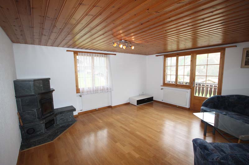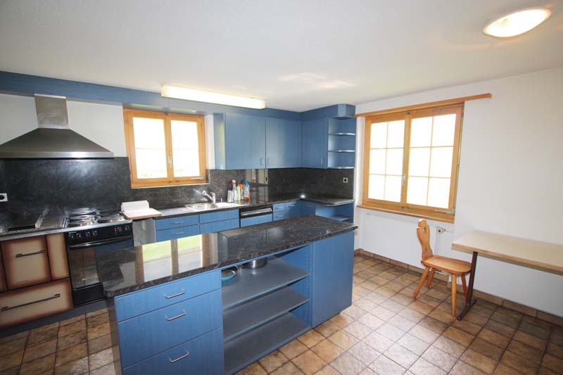 * 1Raumangebot: 6.5.-Zi.-Familien-Wohnung im 1. OG mit 140 m2 Nettowohnfläche: Eingangsbereich mit Einbauschränken. Sehr grosse Wohnküche mit rollbarer Rüstinsel, Wohnzimmer mit zusätzlichem Tavetscherstein-Holzofen und Balkonanschluss,